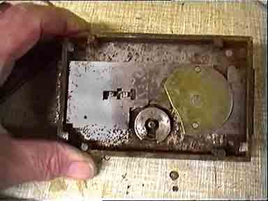 The weakness were that wedges driven between the door plate and the edge of the two flat plates of the body could easily open a gap sufficient to accept the point of a lever. With the door being so thin, purchase could then be gained behind the plate forcing it outwards and causing the cheese head screws to burst as the gap widens. The remaining lockcase could then be simply removed. Even if the heads of the screws held, there would have been insufficient thread in a blind hole in a 3/8" plate to offer any resistance. (fn.5)